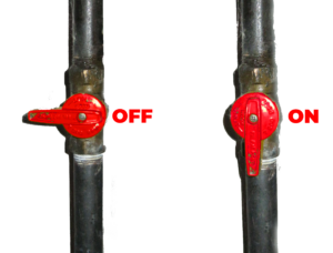 The gas is on if the valve is parallel with the gas pipe, and it is off if the valve is perpendicular to the gas pipe.